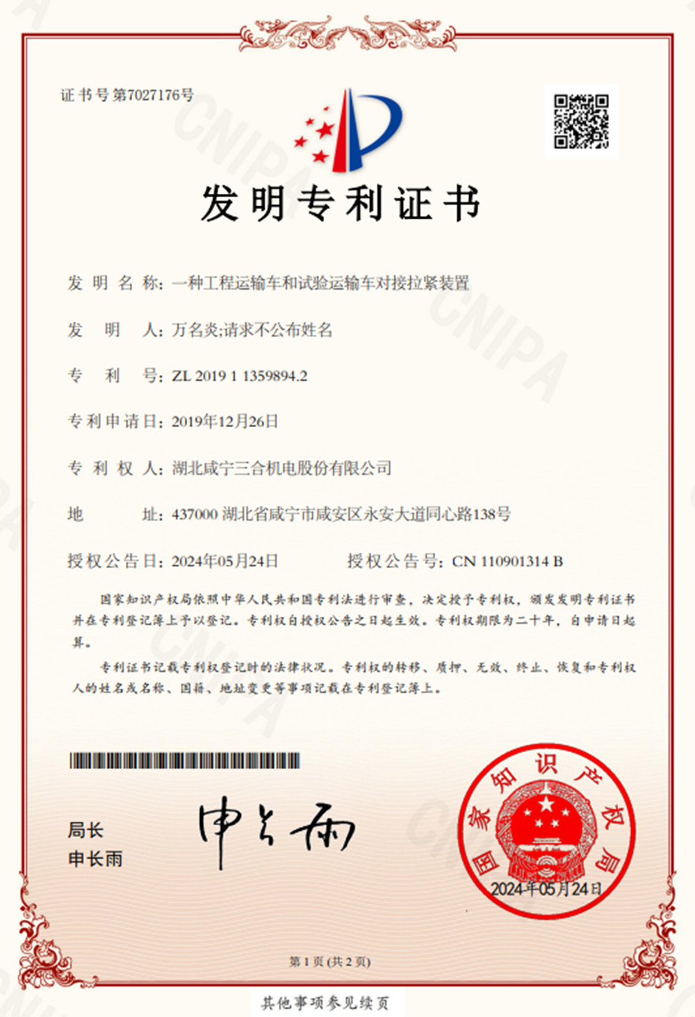 專(zhuān)利證書(shū)